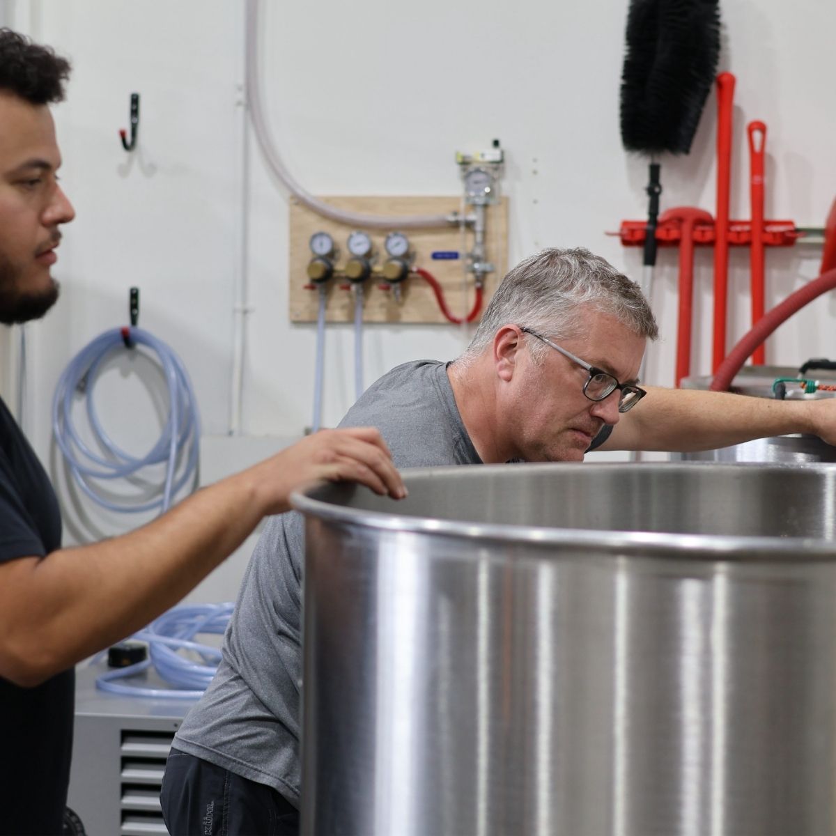 松コース最大の特長は、ブルーハウスを使用し、本番さながらの仕込み体験ができる点です。小規模ブルワリーで実際に使われる設備を動かし、温度管理・ポンプ操作・配管の流れ・ホースの扱い・動線設計・衛生管理といった、現場で欠かせない要素を五感で体感できます。「なぜこの操作が必要なのか」「どこで品質に差が出るのか」といった視点も共有され、単なる作業ではなく、再現性と理論に裏打ちされた醸造技術として学ぶことができます。BrewZillaなどの小型機器では見えにくい「設備が変わると何が変わるか」を実感できる貴重な機会です。醸造現場をリアルに体験したい方や、開業前に一度プロ仕様の設備に触れたい方に最適な実践型研修です。