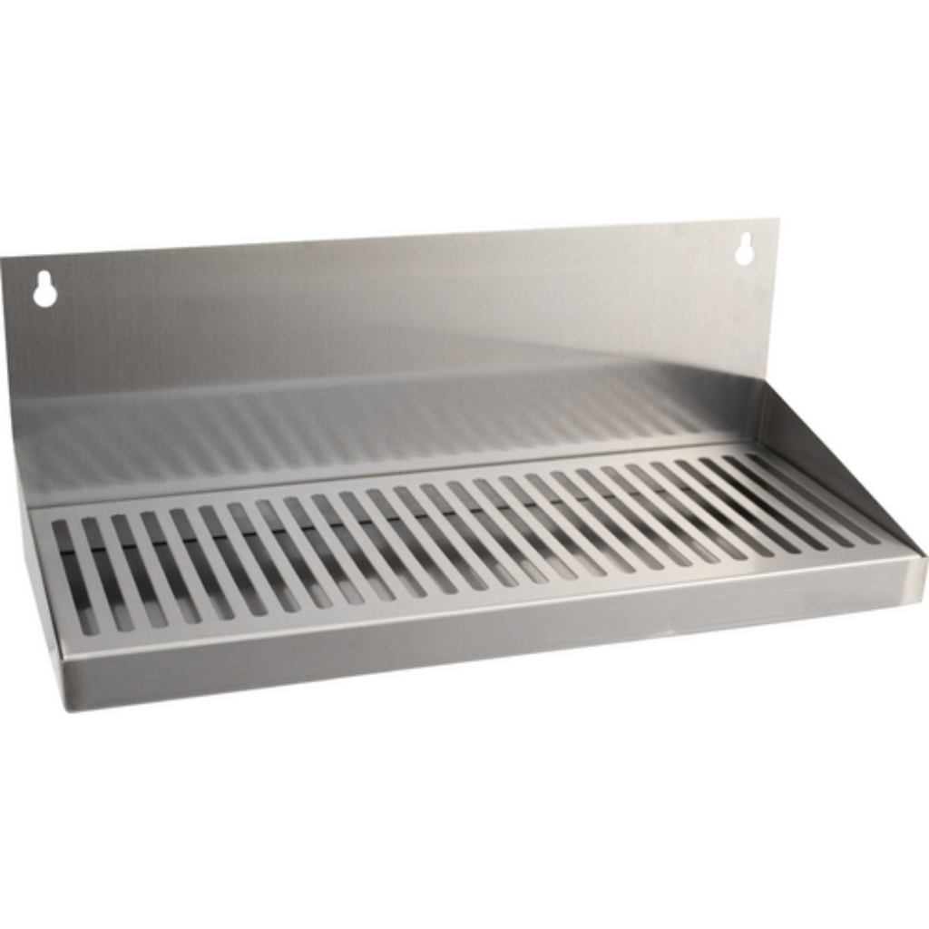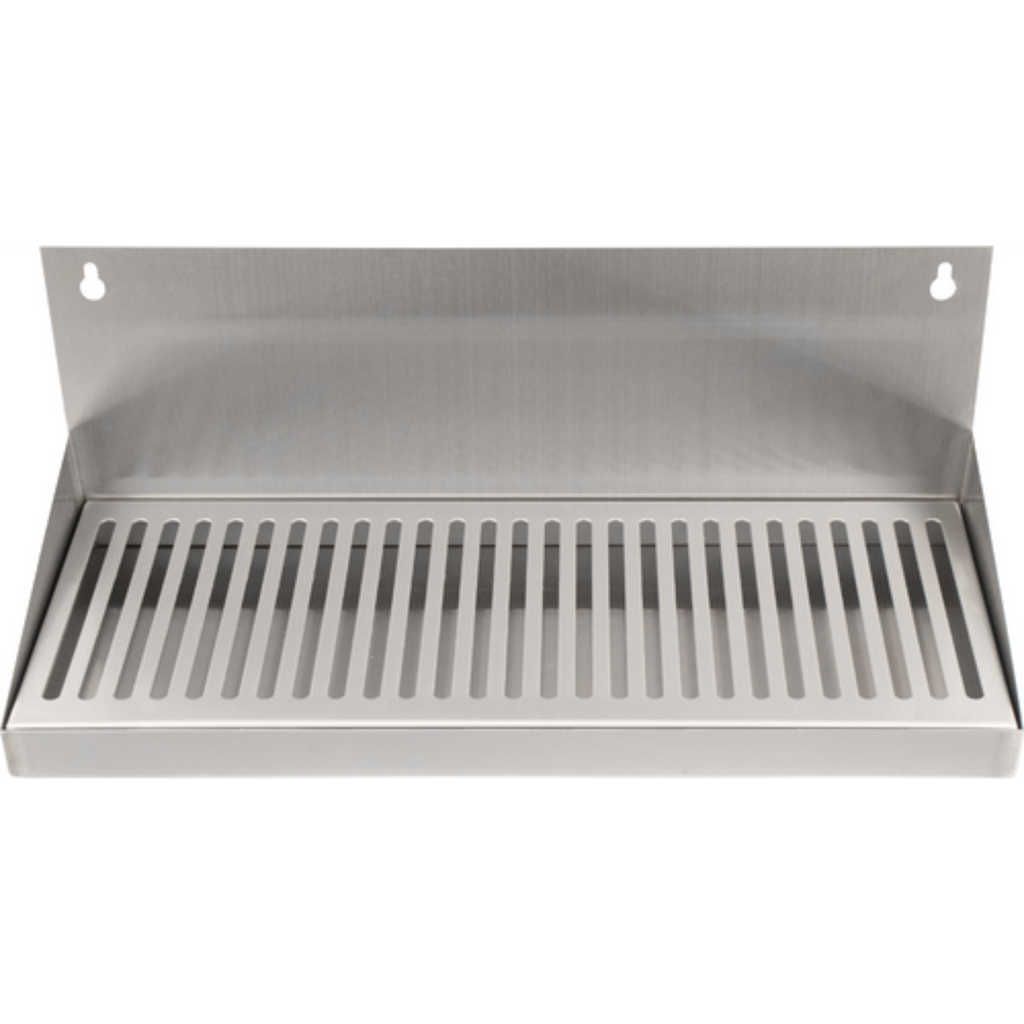 ステンレス製のドリップトレイで、壁掛け用の穴があらかじめ開いています。幅約 40cm、高さ約 13cm のバックパネル付き。グリルは取り外し可能で、清掃も簡単です。4〜5タップのドラフトシステムに最適です。