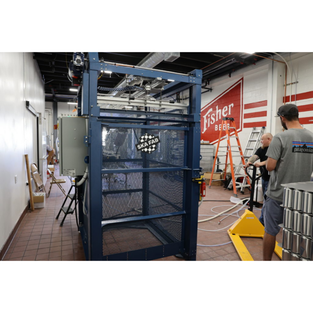 NMBは既存のコンベアシステムや後工程の装置と簡単に接続でき、大規模なライン改造なしでスムーズな生産フローを実現します。 電源は220V 単相(1ph)、対応パレットサイズは44インチ×56インチ(約112×142cm)で、最大パレット高さは69.5インチ(約177cm)。 ※日本の製缶会社のパレットサイズにも対応可能。設置には最低115インチ(約292cm)の天井高が必要です。